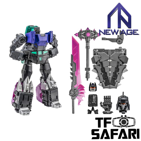 Features:  Note: This is the link for H72B Shattered Glass (SG) Version This Newage H72B Typhon by NewAge is of legends scale and transforms into a mechanic ankylosaurus.  This figure is designed originally by the studio and can be combined with other five Newage dinobots into the final giant combiner robot.   Status:  2026-Jan: 1st batch in stock.   Parameters: Producer NewAge (NA) Size 16cm / 6.3" Material ABS Plastic Shipment From China Note Legends class toy