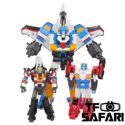 Features: The "Big Powered Group" formed by Dai Atlas, Sonic Bomber, and Roadfire can combine into a mighty space ship in their disguise mode. Dai Atlas has 4 modes: shuttle, tank, robot, and base, while Sonic Bomber and Roadfire have 3 modes: vehicle, robot and base. Whole set includes: 1 × Dai Atlas main figure1 × Sonic Bomber main figure1 × Roadfire main figure3 × Titan Master Figures3 × Blasters Genuine official MISB product, not KO. Buy Upgrade Kits here to solve the gap issue on Dai Atlas' legs: Shockwave Lab SL-52 Upgrade Kit for Dai Atlas115 Workshop YYW-01 Upgrade Kit for Dai Atlas And also the Z sword for Dai Atlas! Shockwave Lab SL-53 Z sword for Dai Atlas *Note:For this on-sale set from official side it is hard for TFSAFARI to offer post-sale service. We only guarantee that the product is genuine(not KO)and MISB. We cant be...