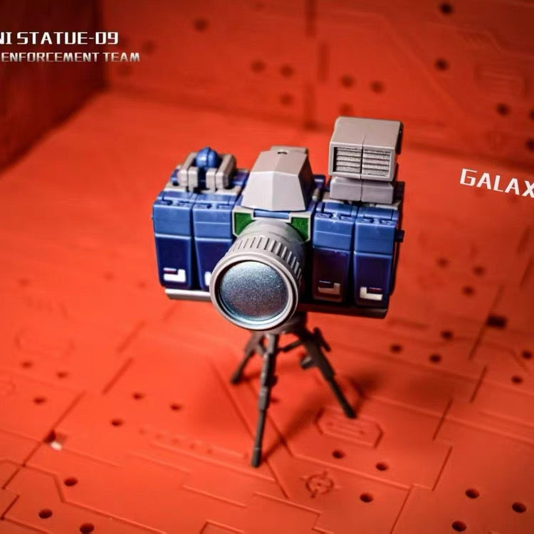 This New Mini 09 Law Enforcement Team (in homage to G1 Reflector Team) by Galaxy Toys & MPH Studio(A relatively new 3rd party transformers studio focusing on legends size toys) is a transformable robot figures team which can combine into a camera