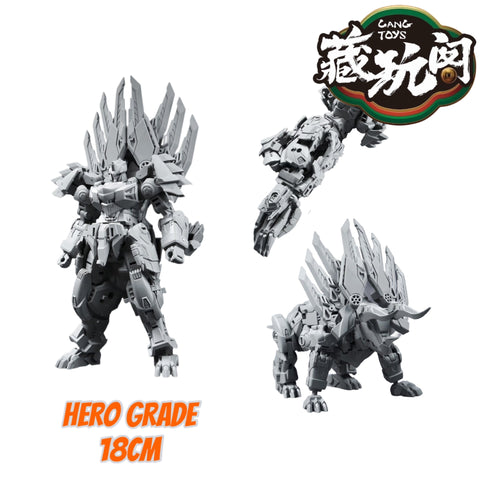 Features: This TA-HYL003 is the Hero-class version of Cang Toys Longyan-03 Breakhorn. It is a minified version of the original Longyan-03 Breakhorn with a few adjustment on the structure. See below photo for the different size of the different classes of Cang Toys. (Left to right: Legend Class - Hero Class - Warrior Class - Soldier Class)   Status: To be released in early 2026. Pre-order customer get special discount and special bonus. Full price < USD65.   Parameters:  Producer Cang Toys Size N/A Material Plastic Shipment From China Note Originally-designed Predaking-like combiner