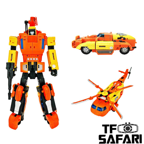 UT-Y03 Sworder is a triple changer that can transform from robot into either a helicopter or an armored Vehicle. Dance with the sandstorm.