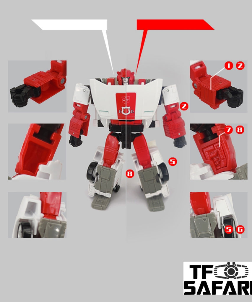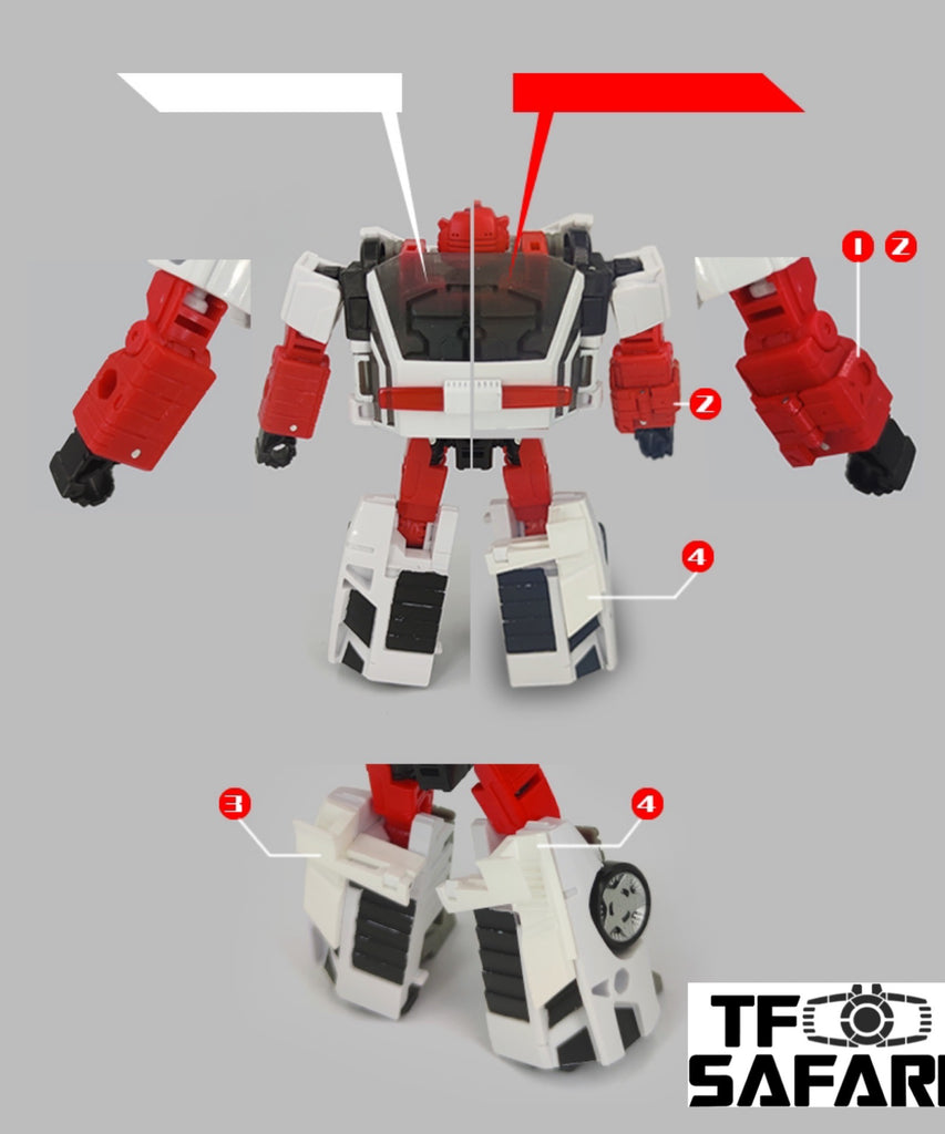 #1, #2: Gap fillers for the back of the lower arms (fully buit-into the disguise mode, no need to be removed for transormation)